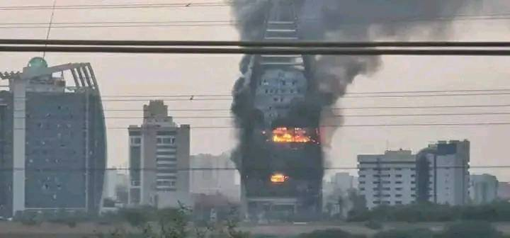 وتداول رواد مواقع التواصل والصفحات الإخبارية مقطع الفيديو وصورا تظهر احتراق البرج الذي يعد أحد معالم العاصمة السودانية الخرطوم.