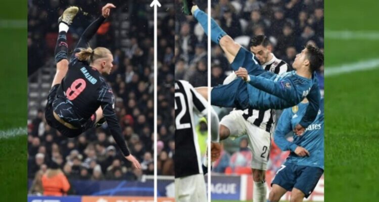 إنجلترا – أعادت أكروباتية النرويجي إيرلينغ هالاند مهاجم مانشستر سيتي إلى الأذهان قفزة البرتغالي كريستيانو رونالدو جناح النصر السعودي حاليا، في شباك يوفنتوس عام 2018 عندما كان مع ريال مدريد.