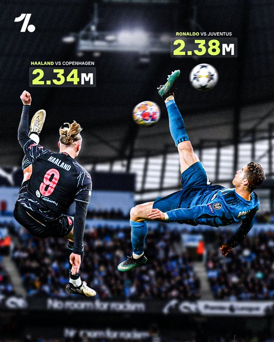 وكان هالاند قابل كرة عرضية بركلة خلفية مزدوجة، من على ارتفاع مذهل.