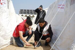وفي سياق آخر، تقدم جمعية الهلال الأحمر المصري، أنشطة ترفيهية لأطفال غزة داخل مخيم خان يونس الجديد لتقديم الدعم النفسي للصغار جراء الحرب الوحشية الغاشمة التي يشهدها القطاع، منذ 7 أكتوبر الماضي من قبل قوات الاحتلال الإسرائيلي.
