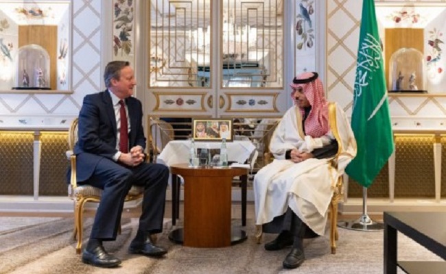 السعودية – بحث وزير الخارجية السعودي فيصل بن فرحان، امس الاثنين، مع نظيره البريطاني ديفيد كاميرون، تطورات الأوضاع في قطاع غزة التي تستقبل شهر رمضان مع تواصل الحرب الإسرائيلية المدمرة عليها منذ أكثر من 5 أشهر رغم جهود إقليمية ودولية للتوصل لوقف إطلاق نار.