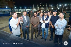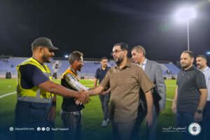كما تفقد وفقاً للمكتب الاعلامي التابع للحكومة المدينة الرياضية التي تم الانتهاء من إنشائها وسيجري افتتاحها بمشيئة الله يوم الثلاثاء القادم، وتضم المدينة الرياضية مدرجات تتسع لنحو 7000 متفرج، وعدة منشآت ومرافق وصالة الألعاب المسقوفة، وسيتم تدشين المدينة الرياضية بإقامة البطولة العربية لكرة القدم المصغرة (ميني فوتبول) للمرة الأولى في ليبيا.