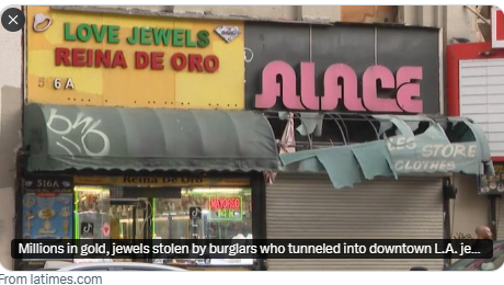 الولايات المتحدة – تمكن لصوص من حفر نفق للوصول إلى متجر مجوهرات في لوس أنجلوس الأمريكية، وسرقة ساعات ومجوهرات بقيمة 10 ملايين دولار.