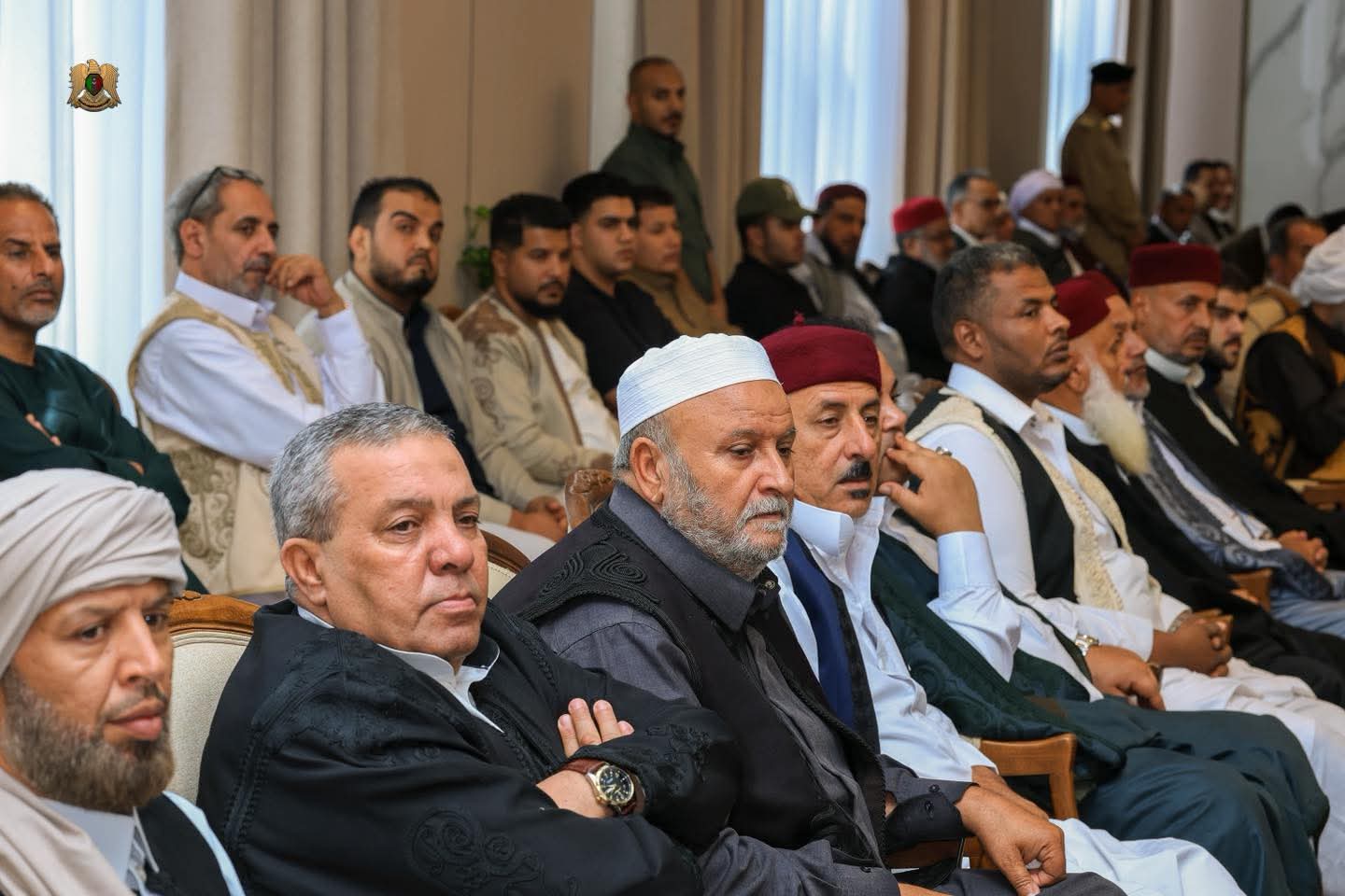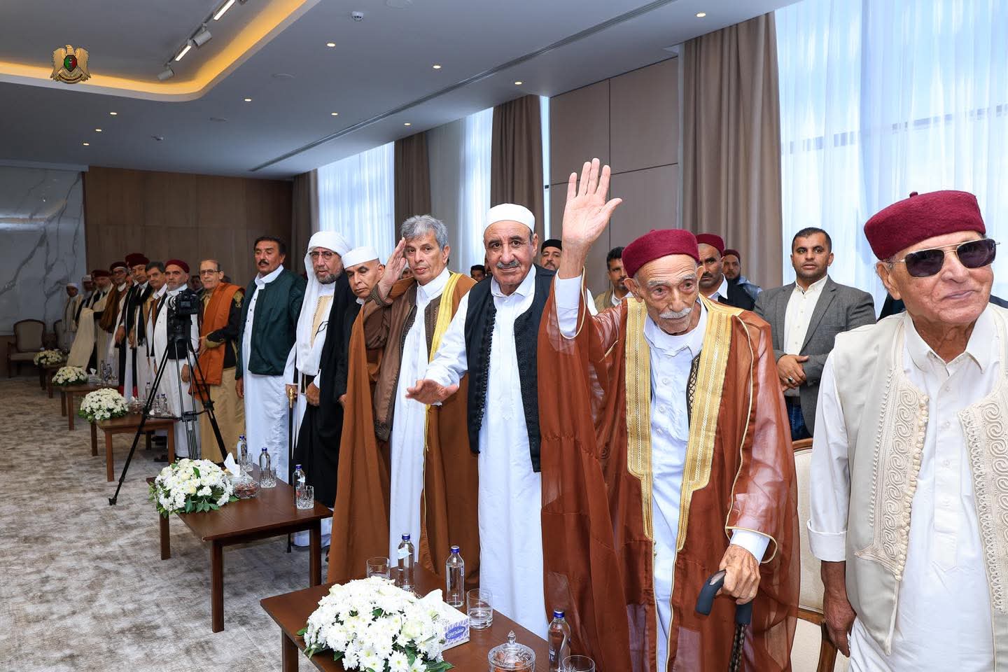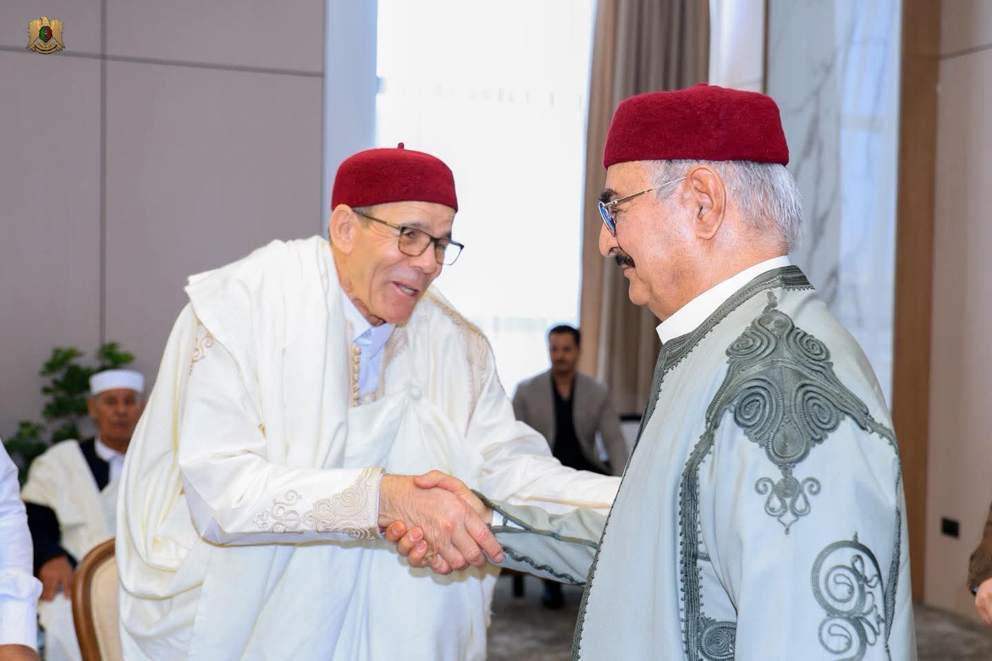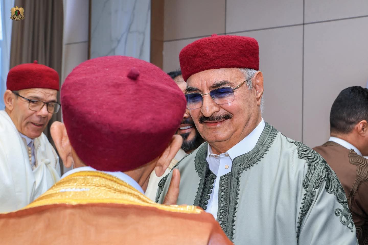ليبيا – استقبل القائد العام للقوات المسلحة، المشير خليفة حفتر، مشايخ وأعيان وحكماء القبائل بالمنطقة الشرقية والوسطى والجنوبية الشرقية في مدينة المشير خليفة حفتر العسكرية، بحضور رئيس حكومة الاستقرار أسامة حماد، ورئيس الأركان العامة الفريق أول ركن خالد حفتر.