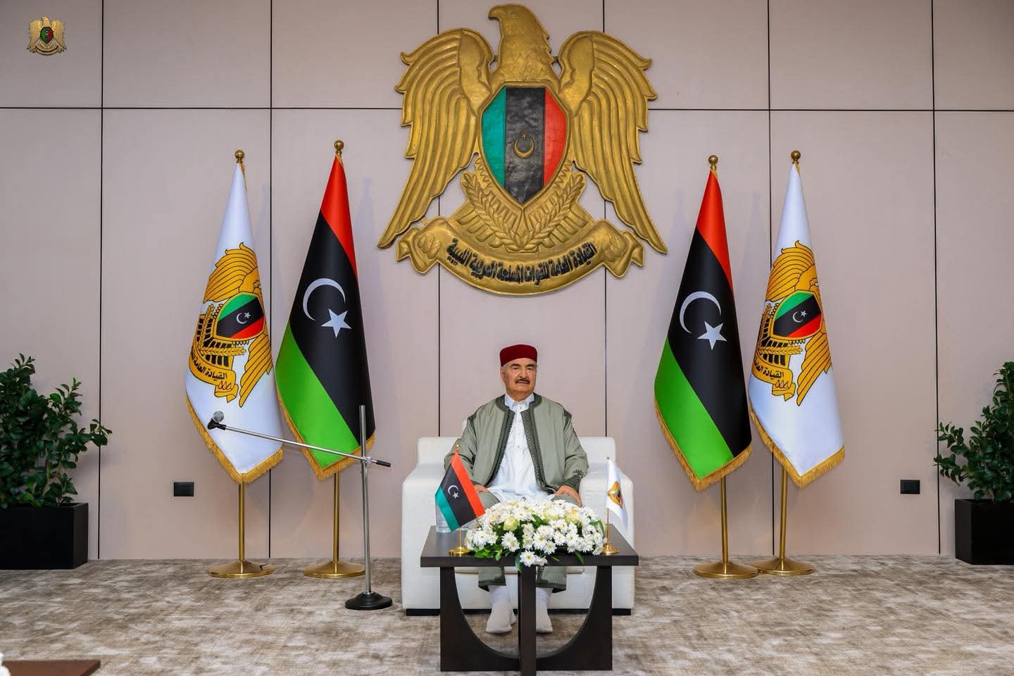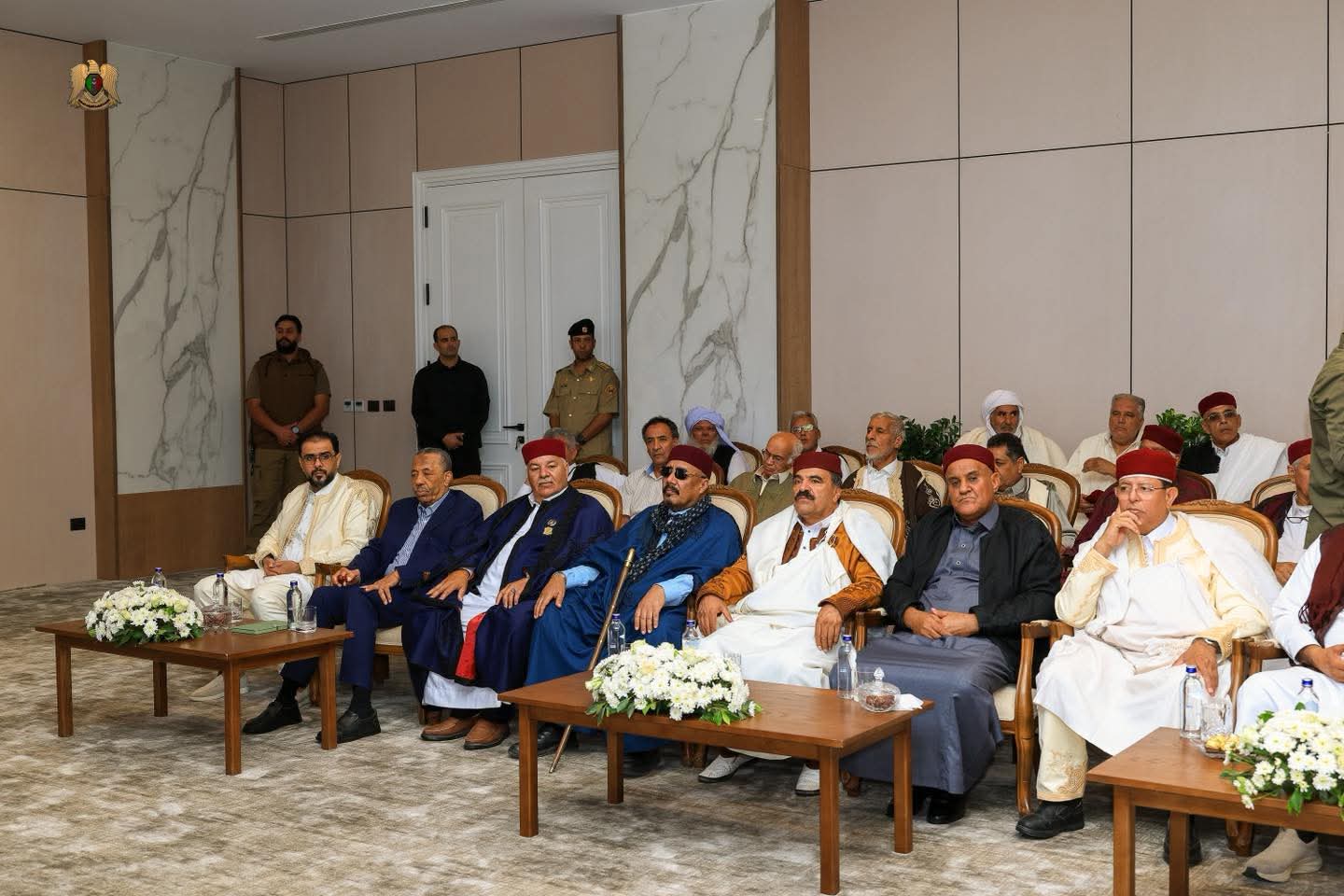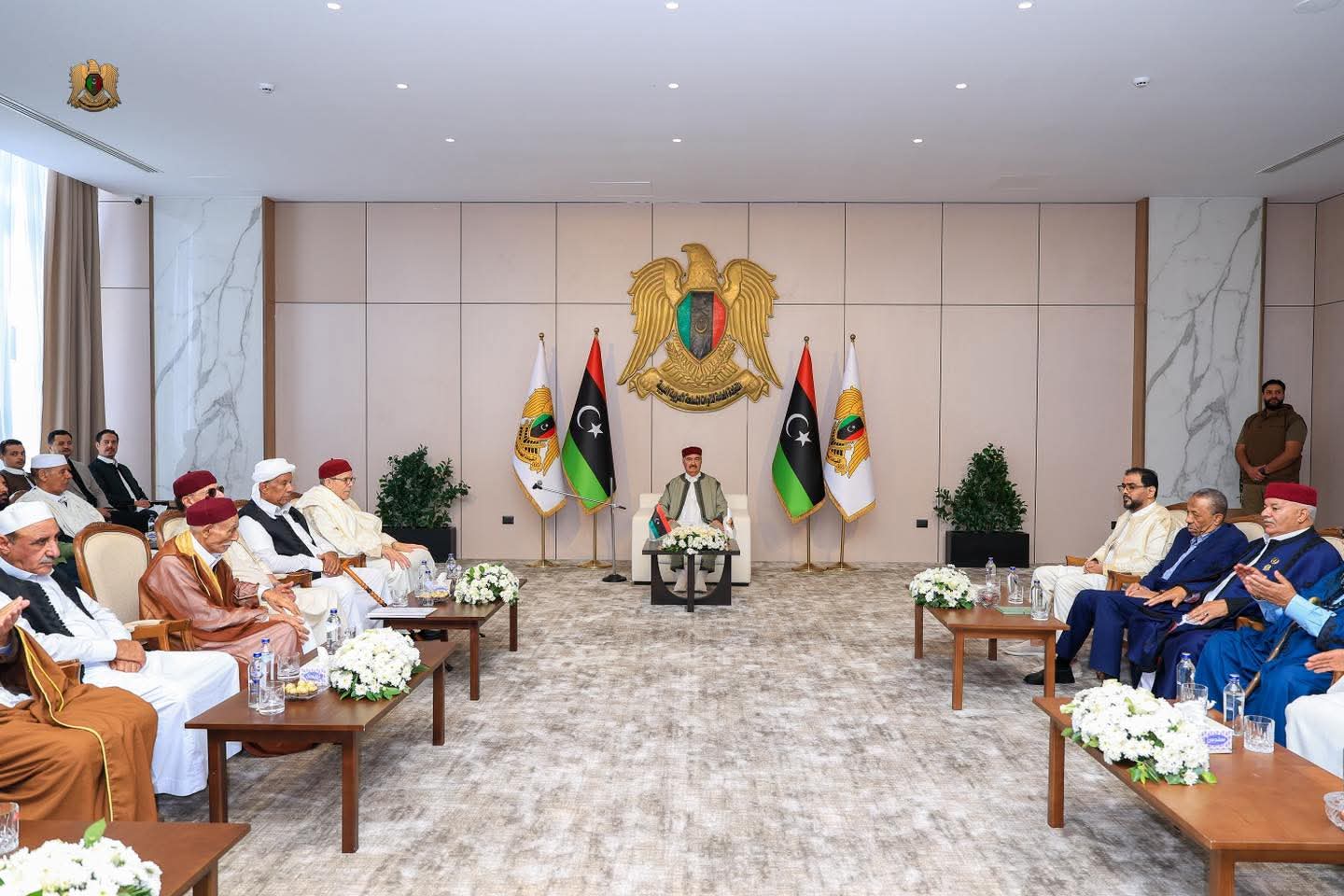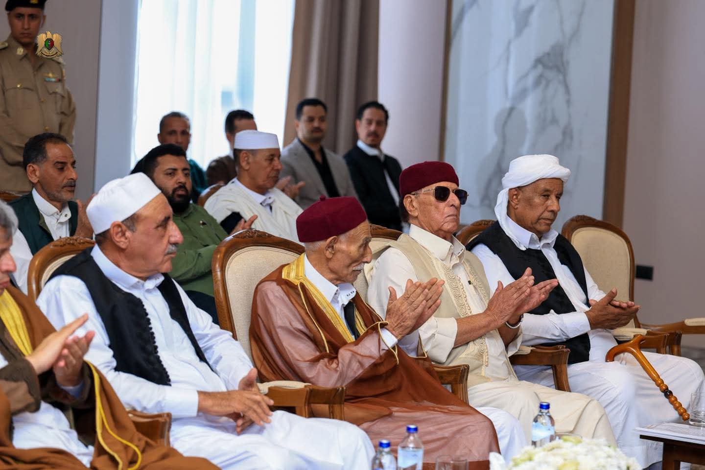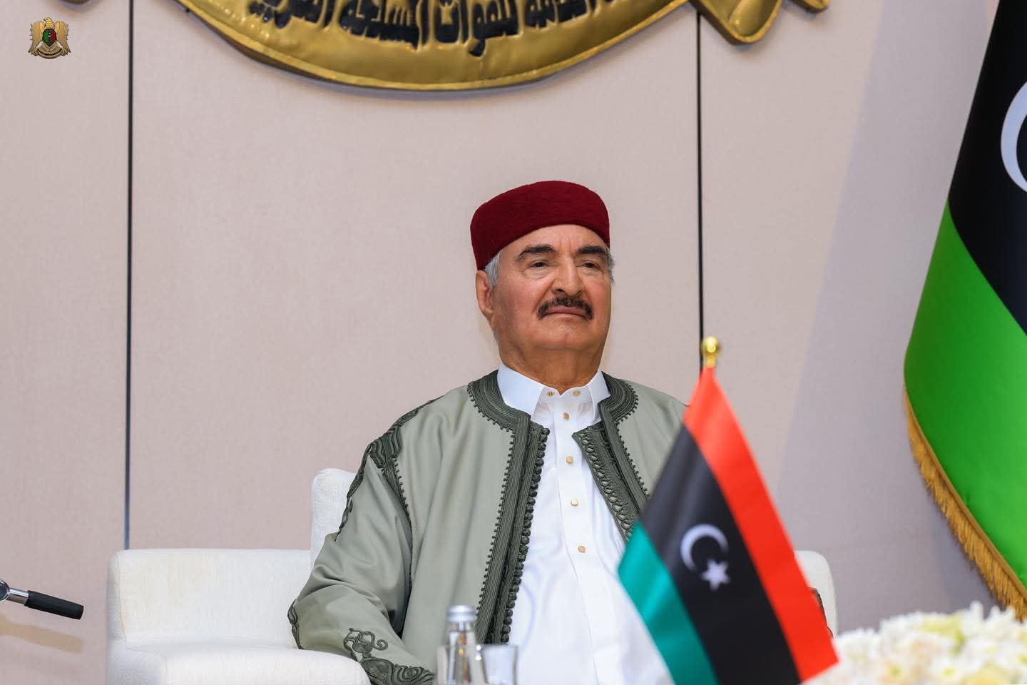 ليبيا – استقبل القائد العام للقوات المسلحة، المشير خليفة حفتر، مشايخ وأعيان وحكماء القبائل بالمنطقة الشرقية والوسطى والجنوبية الشرقية في مدينة المشير خليفة حفتر العسكرية، بحضور رئيس حكومة الاستقرار أسامة حماد، ورئيس الأركان العامة الفريق أول ركن خالد حفتر.