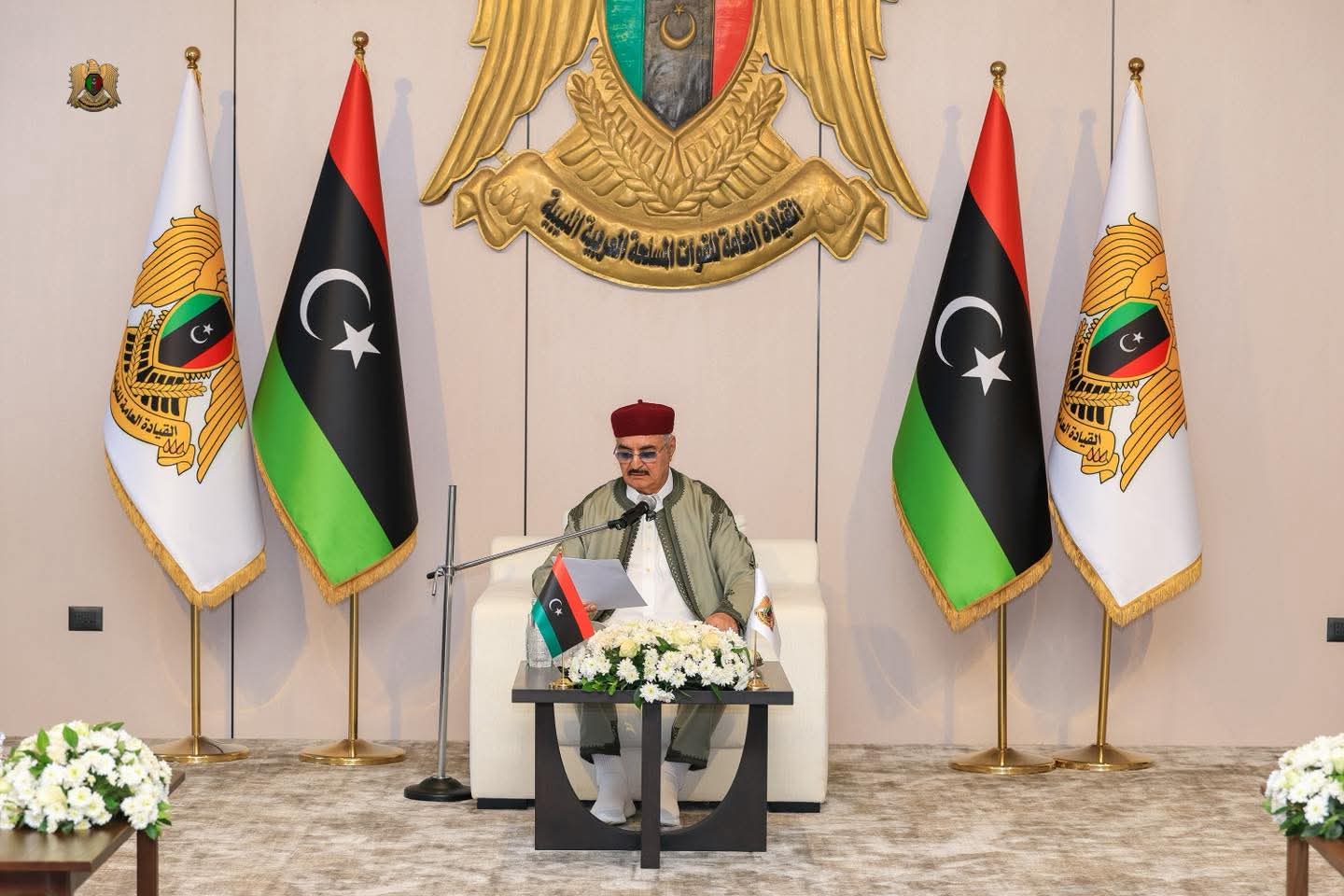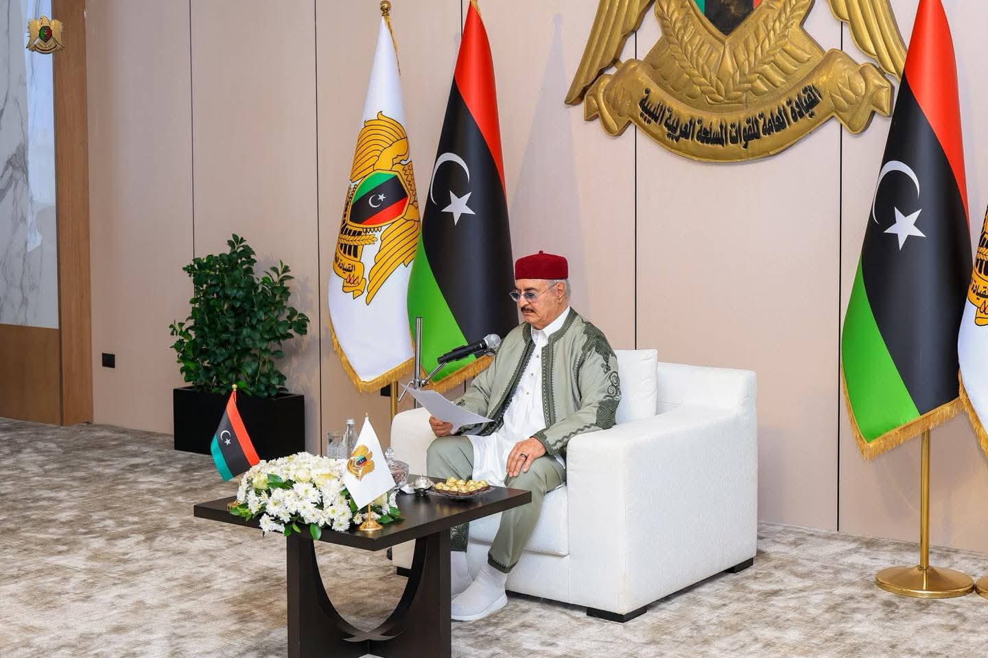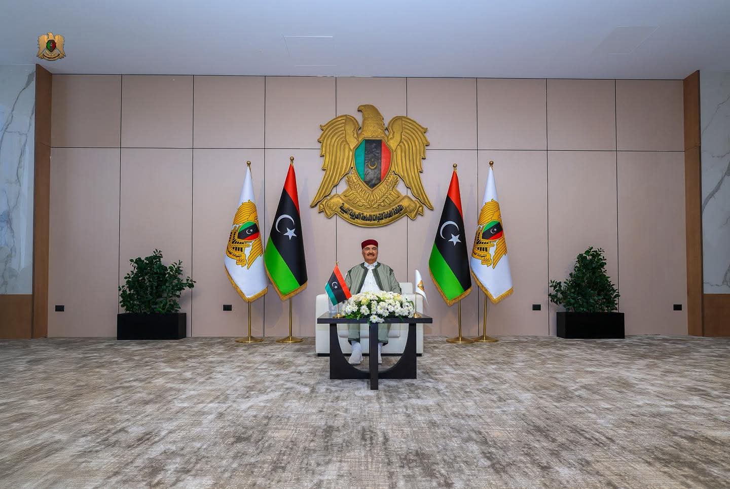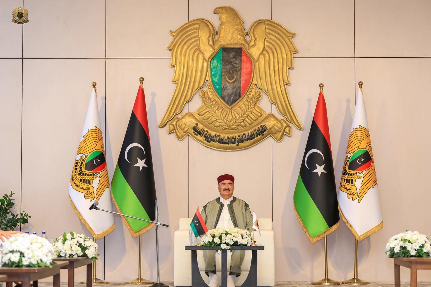 ليبيا – استقبل القائد العام للقوات المسلحة، المشير خليفة حفتر، مشايخ وأعيان وحكماء القبائل بالمنطقة الشرقية والوسطى والجنوبية الشرقية في مدينة المشير خليفة حفتر العسكرية، بحضور رئيس حكومة الاستقرار أسامة حماد، ورئيس الأركان العامة الفريق أول ركن خالد حفتر.
