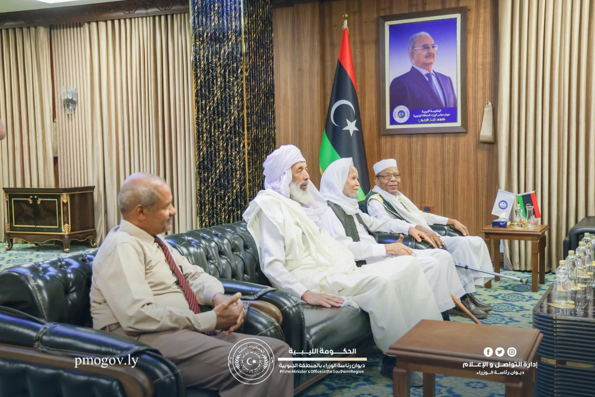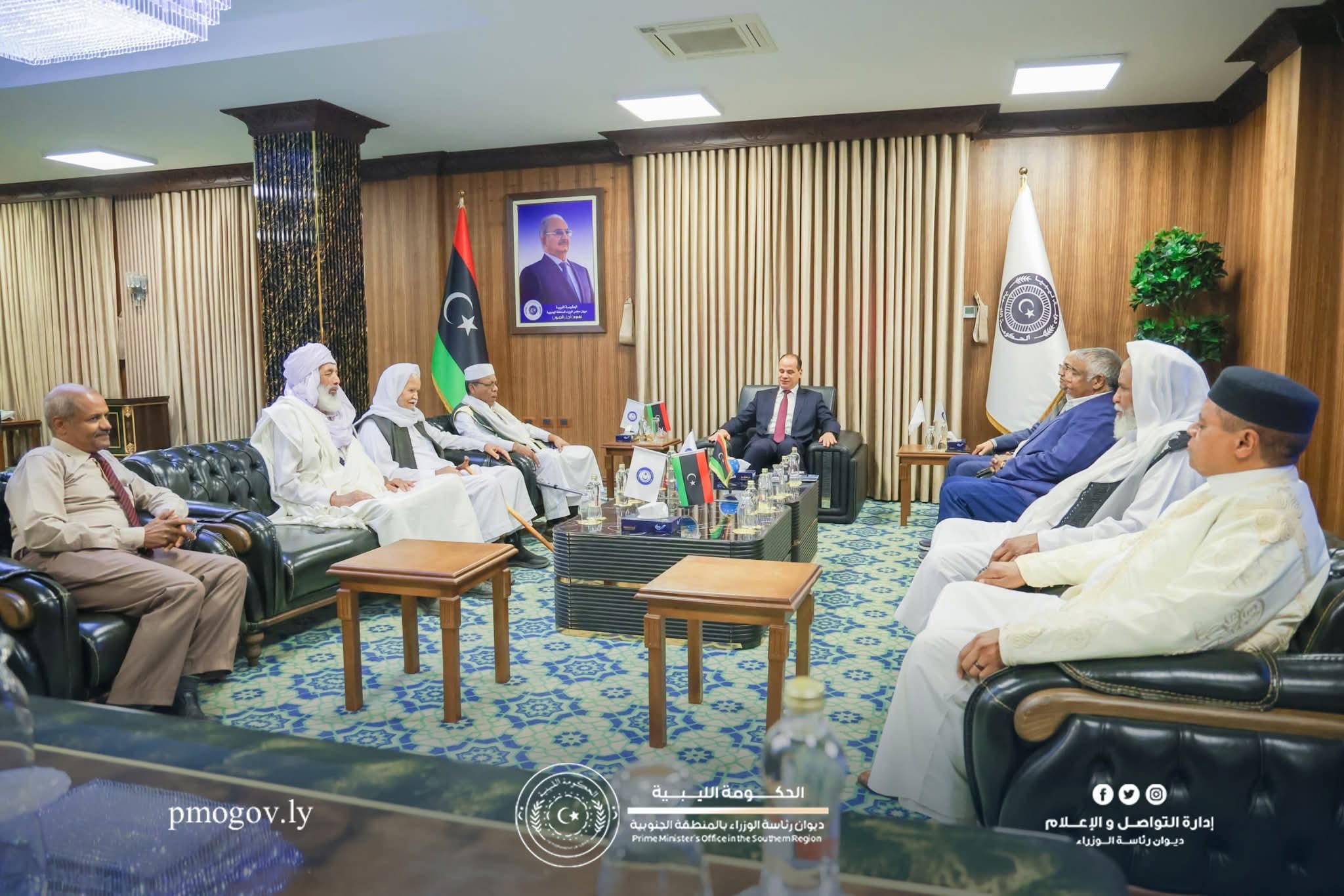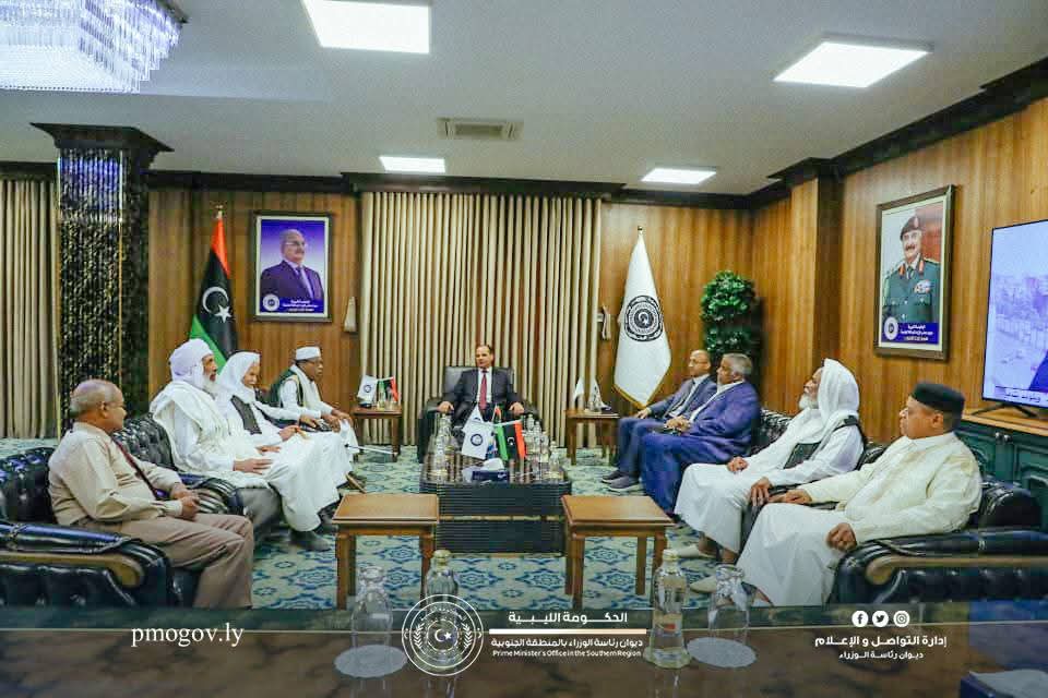 ليبيا – عقد نائب رئيس حكومة الاستقرار ووزير الدفاع أحميد حومة اجتماعًا مطوّلًا مع عدد من مشايخ وأساتذة المنطقة الجنوبية المشهود لهم بالحكمة والخبرة في ملفات المصالحة الوطنية والتوافقات الاجتماعية، بحضور مستشاره الخاص ورئيس اللجنة الفنية الاستشارية إسماعيل الشريف. وضم اللقاء الشيوخ: امحمد زيدان الشريف، عبدالقادر حسن الرشيد، محمد العجيلي الحسناوي، زيدان علي زيدان، محمد عبدالسلام الحضيري، عبدالحفيظ الزروق علي، وبداد قنصو مسعود.