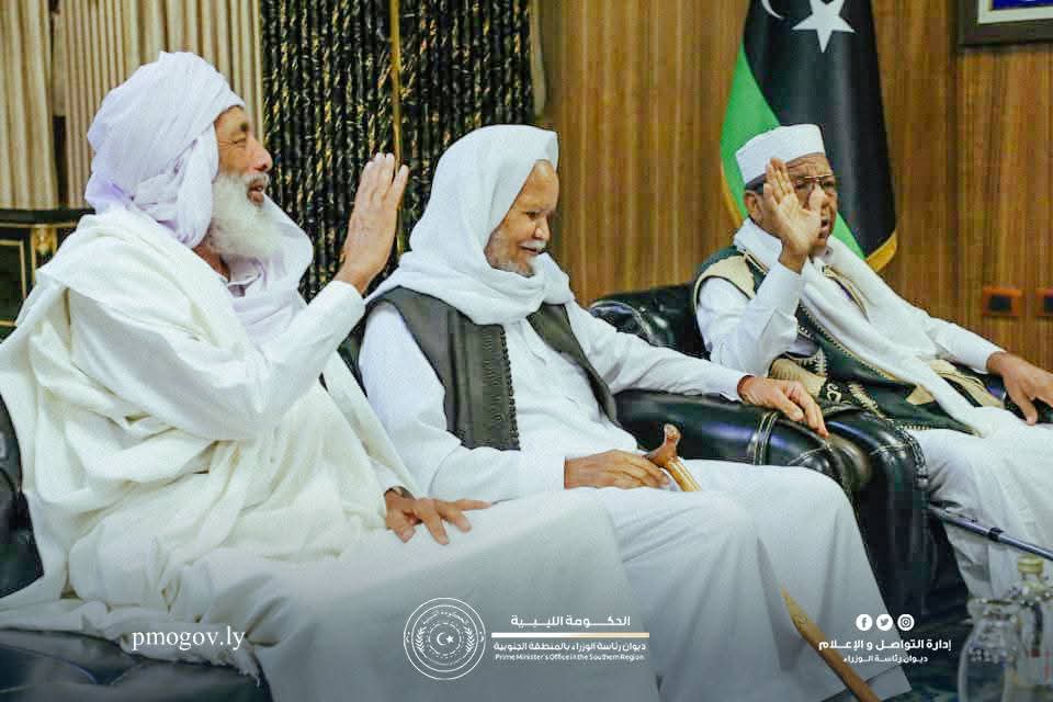 حيّا الشيوخ والأعيان جهود القيادة العامة للقوات المسلحة في إعادة الأمن والتهدئة الاجتماعية بمناطق الجنوب، مشدّدين على ترابط الأمن بالاستقرار الاجتماعي، وأن ضمان أمن وتنمية وإعمار الجنوب يرتكز على تظافر جهود المؤسسة العسكرية وتوحيد صفوف كل المكونات الاجتماعية من عرب وطوارق وتبو.