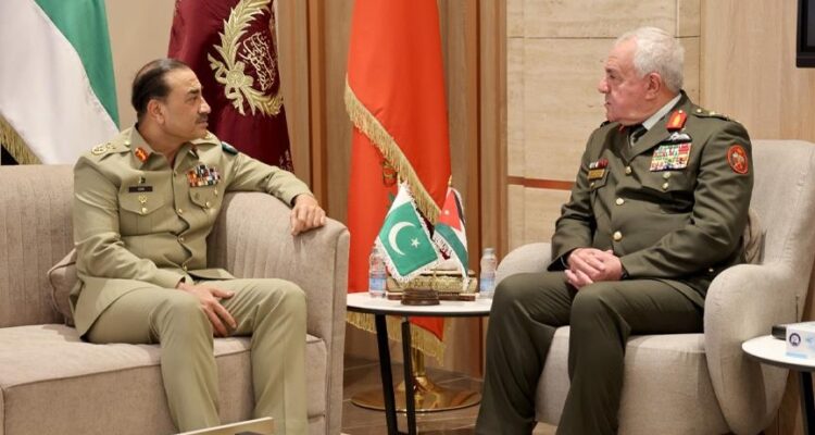 جاء ذلك خلال استقبال قائد الجيش الأردني اللواء يوسف الحنيطي، في مكتبه بالعاصمة عمان، رئيس أركان القوات البرية الباكستانية المشير عاصم منير.
