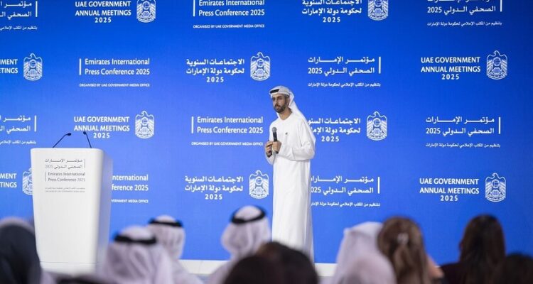 وأوضح الوزير في كلمته خلال مؤتمر الإمارات الصحفي الدولي 2025، أن الاستثمارات الوطنية بـ543 مليار درهم هي منذ العام 2024 وحتى الآن، مشيرا إلى “قوة حضور الدولة في الأسواق العالمية”.