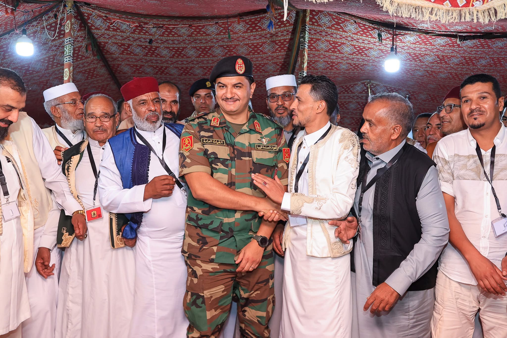 وخلال اللقاء، أشاد الفريق أول ركن صدام حفتر، بحسب المكتب الإعلامي للقيادة العامة، بالدور الوطني لقبائل الواحات ووقوفهم الدائم إلى جانب القوات المسلحة، مؤكدًا حرص القيادة العامة على دعم مشاريع الإعمار والتنمية في بلديات الواحات.