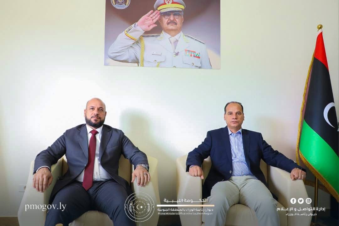 ليبيا – بحث الدكتور أحميد حومة، نائب رئيس مجلس الوزراء للمنطقة الجنوبية ووزير الدفاع بحكومة الاستقرار، مع أمحمد عبدالقادر، وزير الصناعة والمعادن، سبل معالجة القضايا ذات الأولوية القصوى التي تواجه الجنوب الليبي.