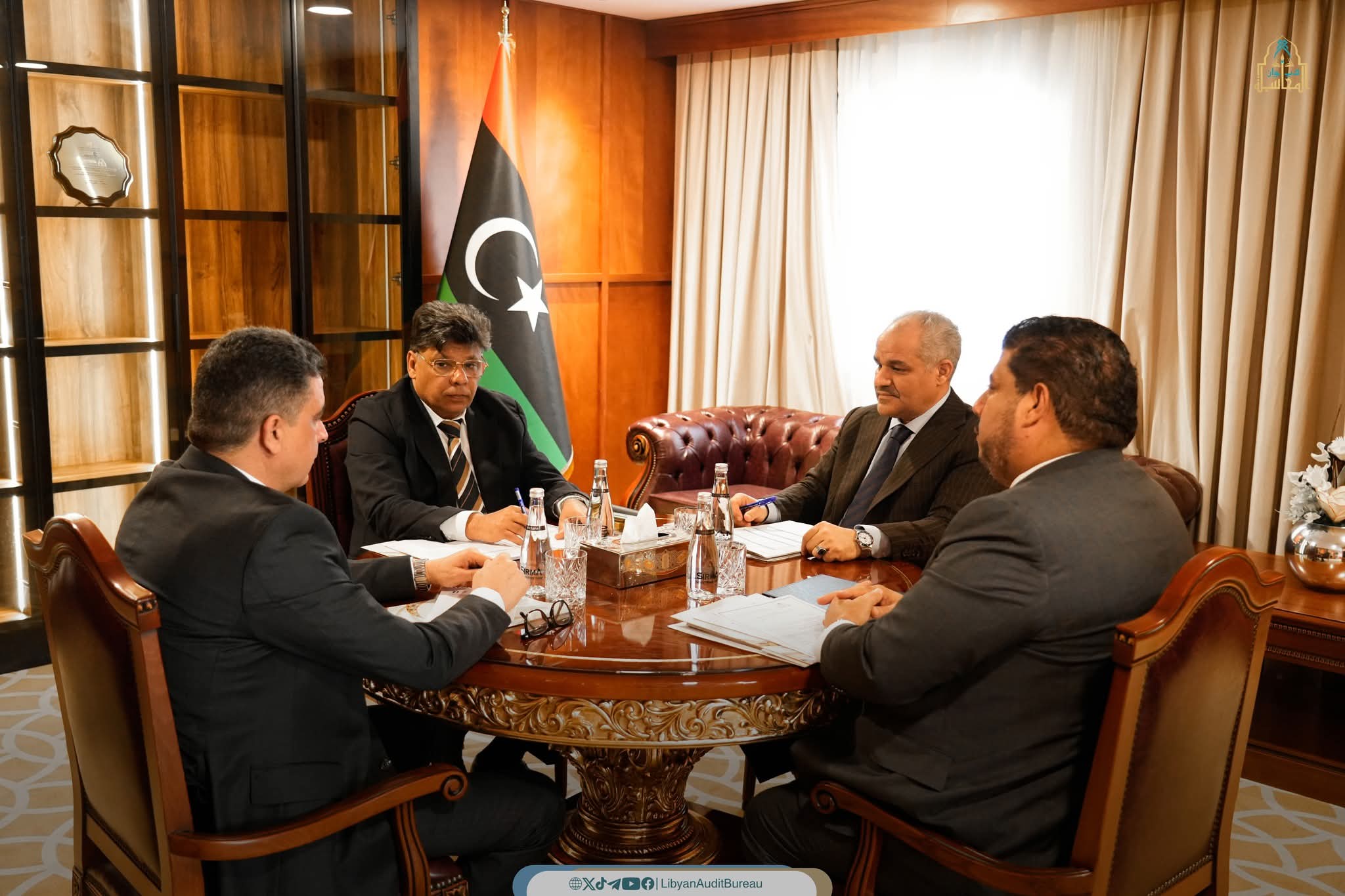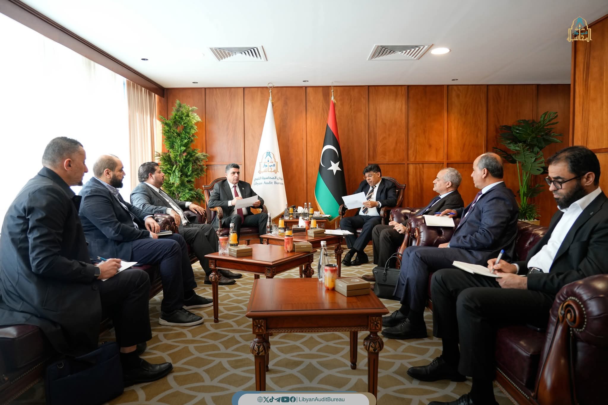 ليبيا – استضاف ديوان المحاسبة اجتماعًا ضمّ رئيس الديوان خالد شكشك، والنائب العام المستشار الصديق الصور، ومحافظ مصرف ليبيا المركزي ناجي عيسى، ورئيس المؤسسة الوطنية للنفط مسعود سليمان، وذلك بحضور الإدارات المختصة من الجهات المشاركة.