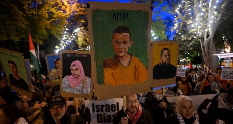 وحمل المتظاهرون لافتات تطالب بوصول المساعدات الإنسانية إلى غزة، وتحتج على “التطهير العرقي” في فلسطين، وامتلاك إسرائيل للأسلحة النووية.