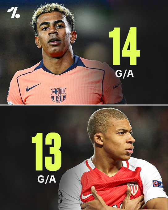بهذا الإنجاز، تجاوز جمال رقم مبابي الذي كان يمتلك 13 مساهمة (10 أهداف و3 تمريرات) قبل بلوغه سن الـ19.