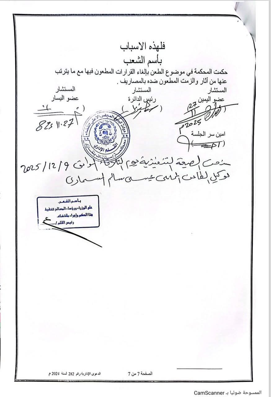 منحت المحكمة الصيغة التنفيذية للحكم الصادر في نوفمبر الماضي عن الدائرة الإدارية الثانية في الدعوى الإدارية رقم (282/2024)، والمرفوعة من حماد طعنًا في القرار رقم (18 لسنة 2024) بإنشاء المفوضية المذكورة، والقرار رقم (26 لسنة 2024) المتعلق بتشكيل مجلس إدارتها، إضافة إلى كل القرارات المرتبطة بها والصادرة عن المجلس الرئاسي.