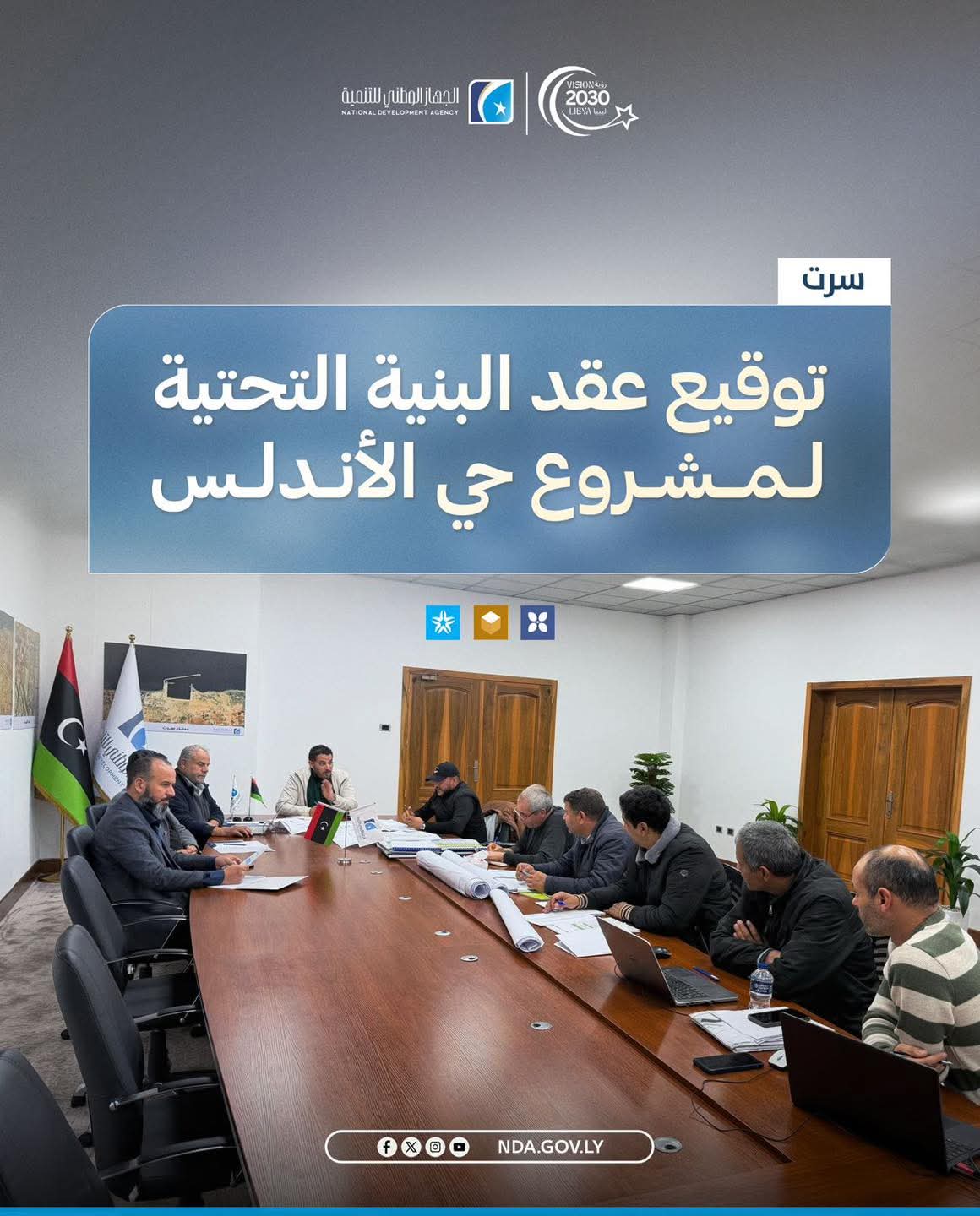 ليبيا – شهدت مدينة سرت توقيع عقد تنفيذ البنية التحتية لمشروع حي الأندلس مع شركة تونسية، بإشراف الجهاز الوطني للتنمية، وذلك ضمن مستهدفات رؤية ليبيا 2030 التي تضع الإنسان في صميم التنمية.