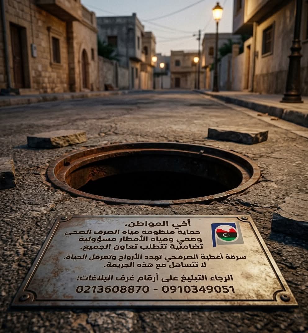 ليبيا – أكدت الشركة العامة للمياه والصرف الصحي أن سرقة أغطية الصرف الصحي ليست مجرد تخريب، بل جريمة تهدد الأرواح وتعرقل الحياة اليومية للمواطنين.