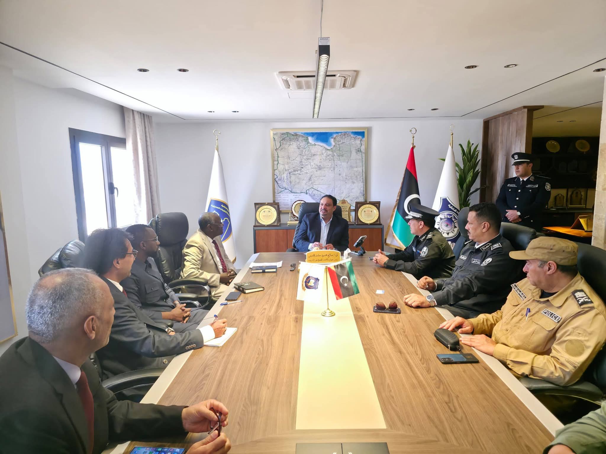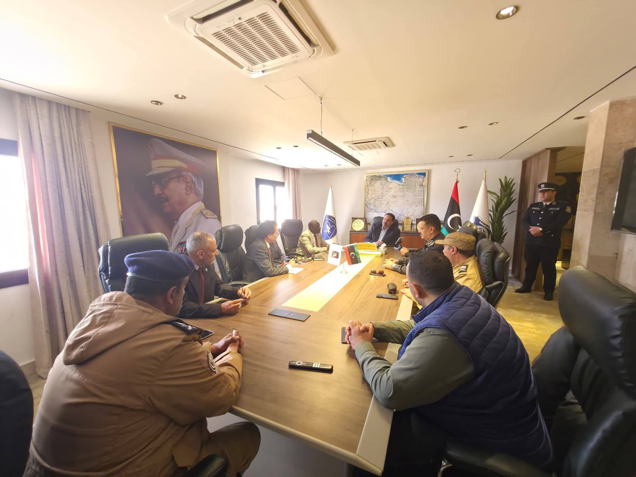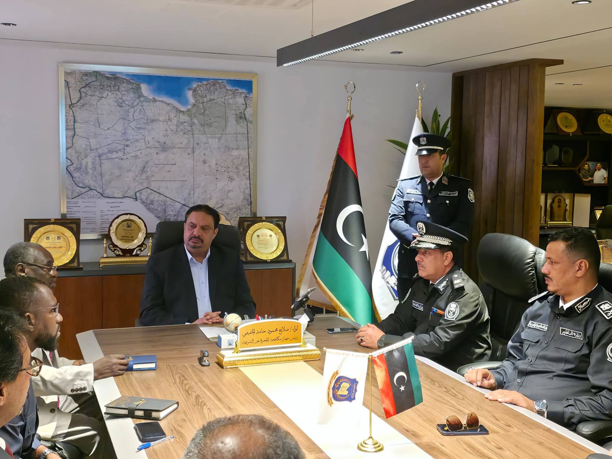 ليبيا – استقبل رئيس جهاز مكافحة الهجرة غير الشرعية اللواء صلاح محمود الخفيفي، الأحد، بمقر ديوان رئاسة الجهاز في مدينة بنغازي، القنصل العام لدولة تشاد حسن الدايسيري والوفد المرافق له، وذلك في إطار تعزيز التعاون والتنسيق المشترك بين الجانبين، بحسب المكتب الإعلامي للجهاز.
