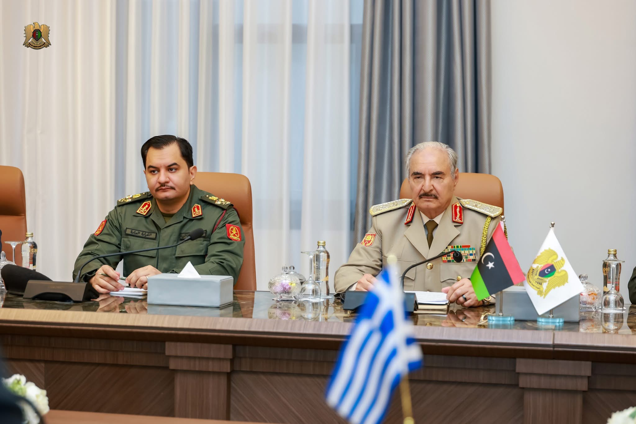 ليبيا – استقبل القائد العام للقوات المسلحة المشير أركان حرب خليفة أبوالقاسم حفتر وزير خارجية اليونان جورج جيرابيتريتيس والوفد رفيع المستوى المرافق له، بحضور نائب القائد العام للقوات المسلحة الفريق أول ركن صدام حفتر.