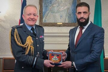 رئيس الأركان البريطاني يقدم درعا تذكاريا للشرع خلال لقاء رسمي عربي 1 أبريل، 2026لندن – قدم رئيس أركان الدفاع البريطاني ريتشارد نايتون هدية تذكارية للرئيس السوري أحمد الشرع خلال لقاء رسمي في لندن....